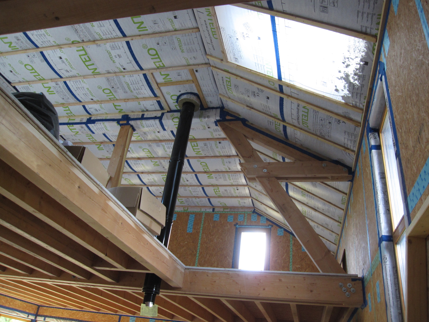 Isolation soufflée des murs en ouate de cellulose entre deux panneaux de fibres et laine de bois (Voiron - Isère)